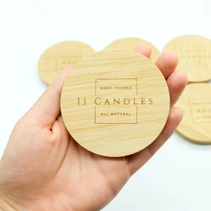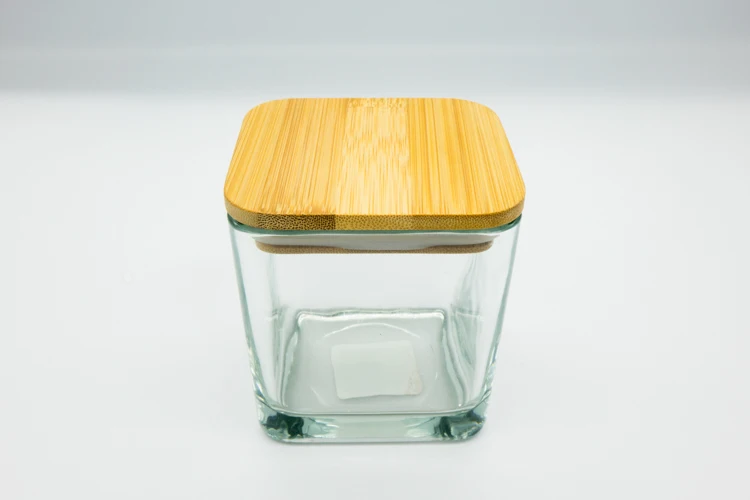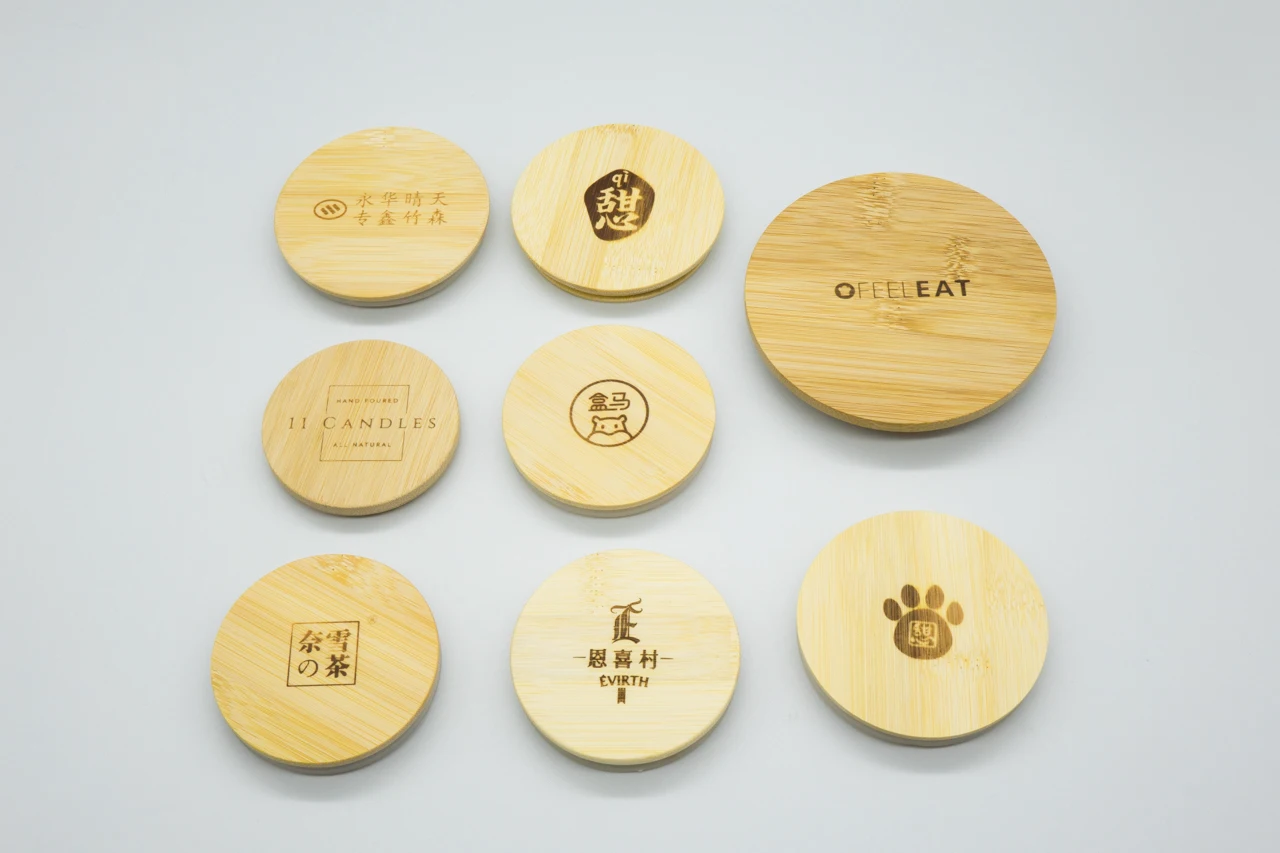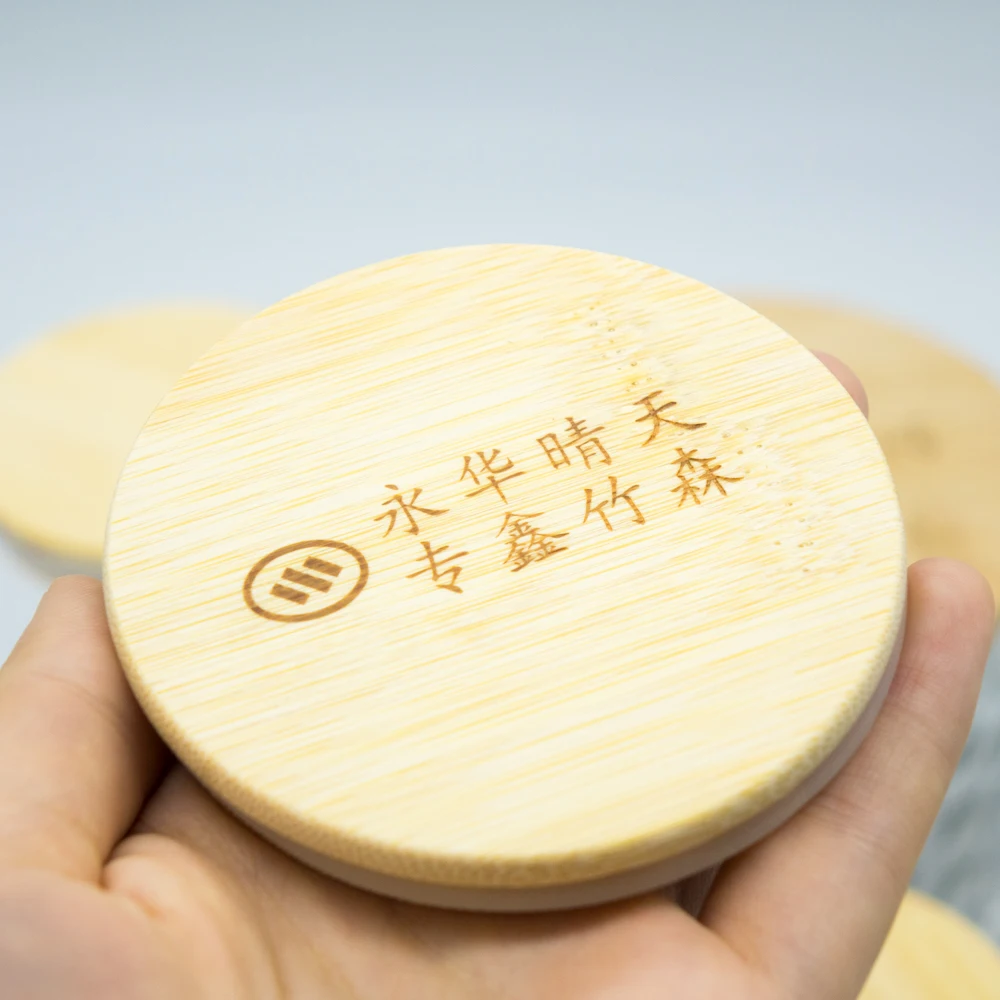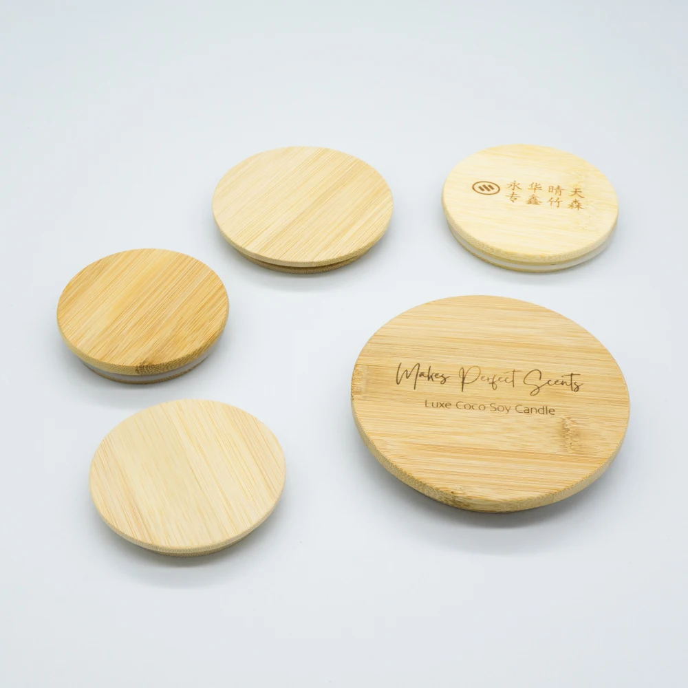 52mm 91mm Container Wit Laser Cut Printed Square Bamboo Covers Lids with Silicone Rings for 10/16 oz Candle Jars Beer Can Glass